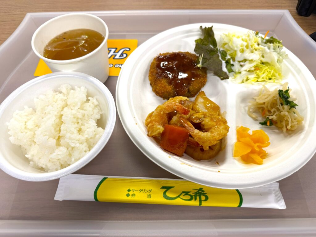 昼食はみんなでケータリングを頂きました。